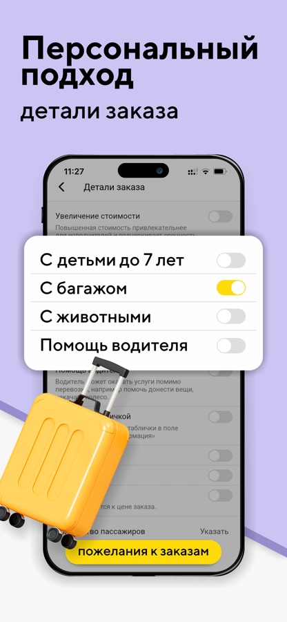 — запланирована поездка с детьми? Укажите эту информацию для исполнителя и вам будет назначен автомобиль с детским креслом.
