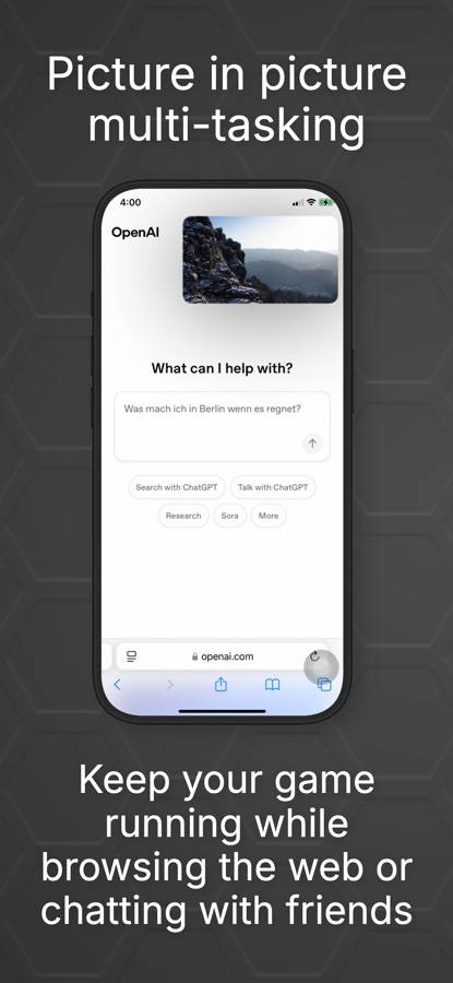• Picture-in-Picture mode keeps your game visible while you use other apps