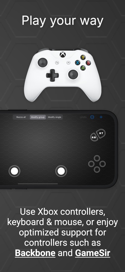 • Full support for Xbox controllers via Bluetooth or USB-C, with optimized experience for form-fitting controllers like Backbone and GameSir