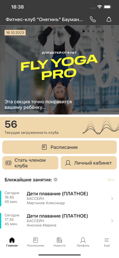 Основные возможности приложения: просмотр расписания, запись на групповые занятия. Заморозка и продление клубных карт. Возможность пополнения баланса и оплаты услуг клуба. Информация о клубной жизни: актуальные акции, новости и мероприятия.