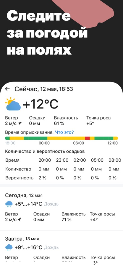 Проверяйте погоду на своих полях, чтобы лучше планировать полевые работы.