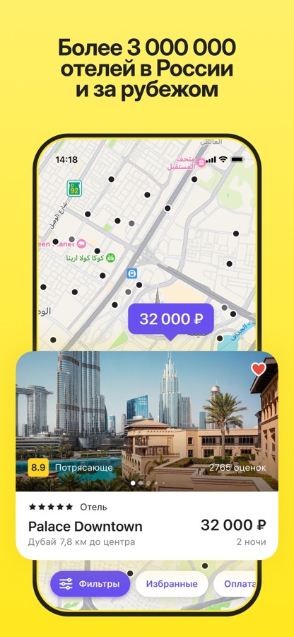 Бронируйте отели и хостелы по выгодным ценам. А найти самое лучшее предложение помогут фильтры — выберите отели по диапазону цен, количеству звезд, оценке пользователей или типу оплаты. Также можно посмотреть расположение отелей на карте.