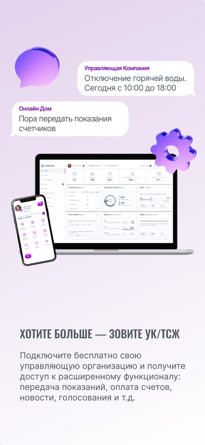 Если ваша управляющая компания или ТСЖ уже работают через Онлайн Дом, вы получаете: