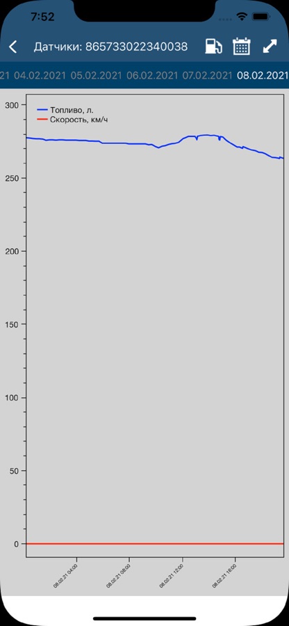 В приложении доступна информация по фактическому расходу топлива Вашими транспортными средствами как в движении так и в стоянках с включенными двигателями, пробеги и моточасы.