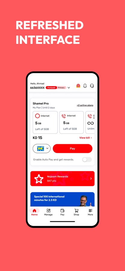 Ooredoo Kuwait app provides you a quick and easy way to check your balance, Recharge your prepaid numbers, Pay your postpaid bills, Transfer Balance and Shop the latest exclusive offers & exciting deals on mobiles, devices and Shamel, Xpress & ANA SIM plans or even get an eSIM.