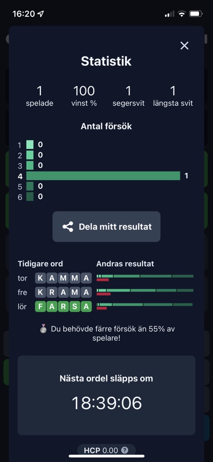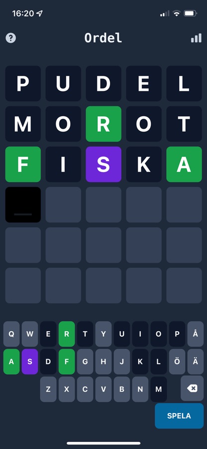Klurigt ordspel — du har 6 försök på dig att gissa dagens ord. Vem kan gissa ordet på minst försök?