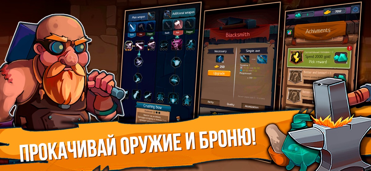 * Собирай награду и подбирай именно те комплекты снаряжения, которые помогут выжить в подземелье.