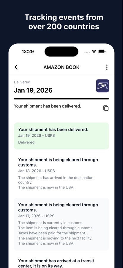 В отличие от других подобных приложений, Ordertracker объединяет данные отслеживания от всех перевозчиков, через которые проходит ваша посылка.