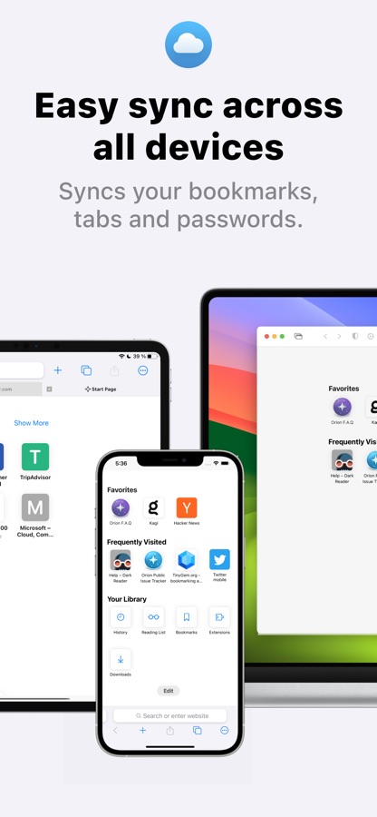 And to protect your privacy on the web, Orion comes with industry-leading anti-tracking technology as well as a powerful built-in ad-blocker.