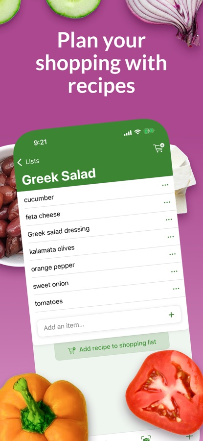 • Add items quickly: on-the-fly completion searches past shopping list items as you type.