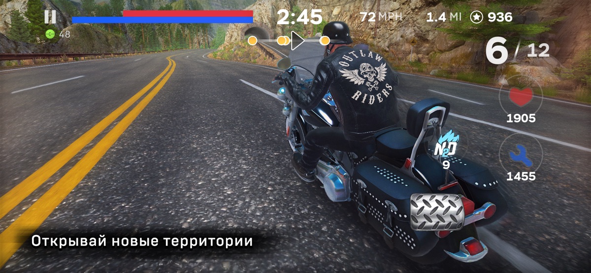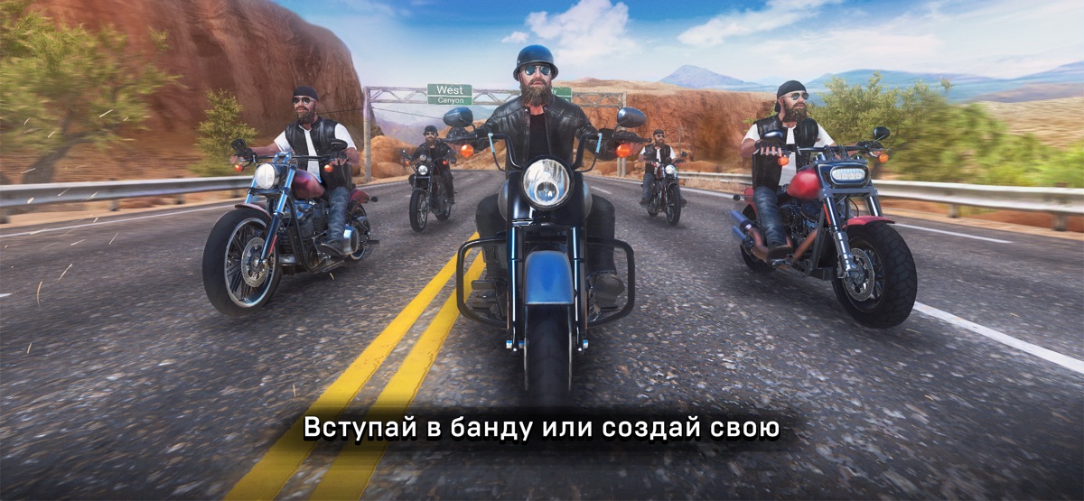 Outlaw Riders — первая мобильная гоночная игра, где тебе придется сражаться на мотоцикле против других игроков в реальном времени!