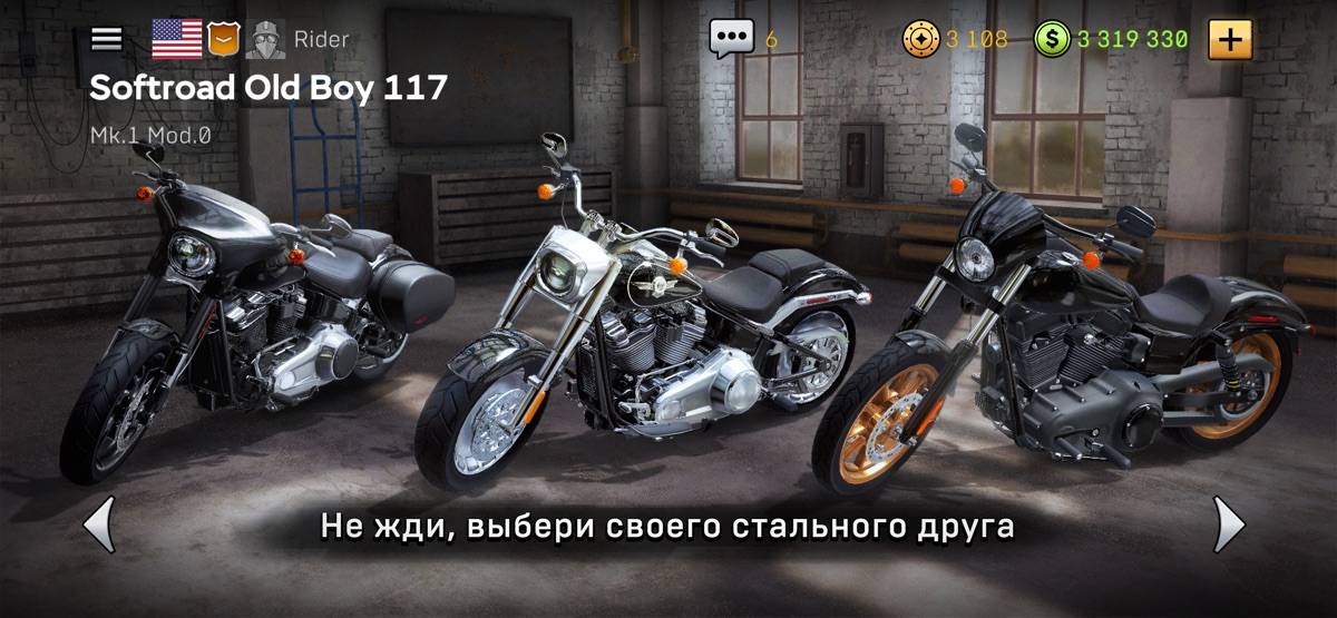 Собирай и прокачивай свою личную коллекцию мотоциклов. Зарабатывай деньги и репутацию среди других байкеров, покоряя вершины рейтингов.