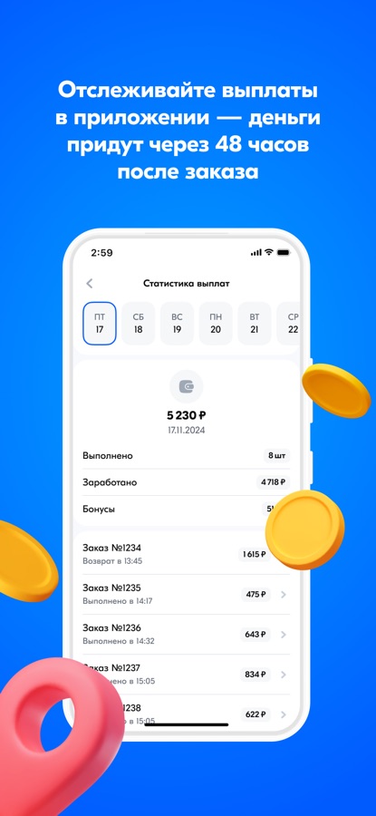 Доставка заказов в свободное время. Вы сами решаете, сколько заказов хотите брать. Нет никаких ограничений — выполняйте столько заданий, сколько вам удобно. Наши курьеры легко совмещают доставку заказов с другой занятостью.