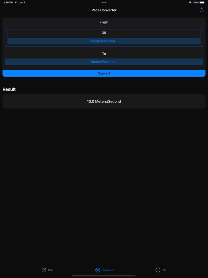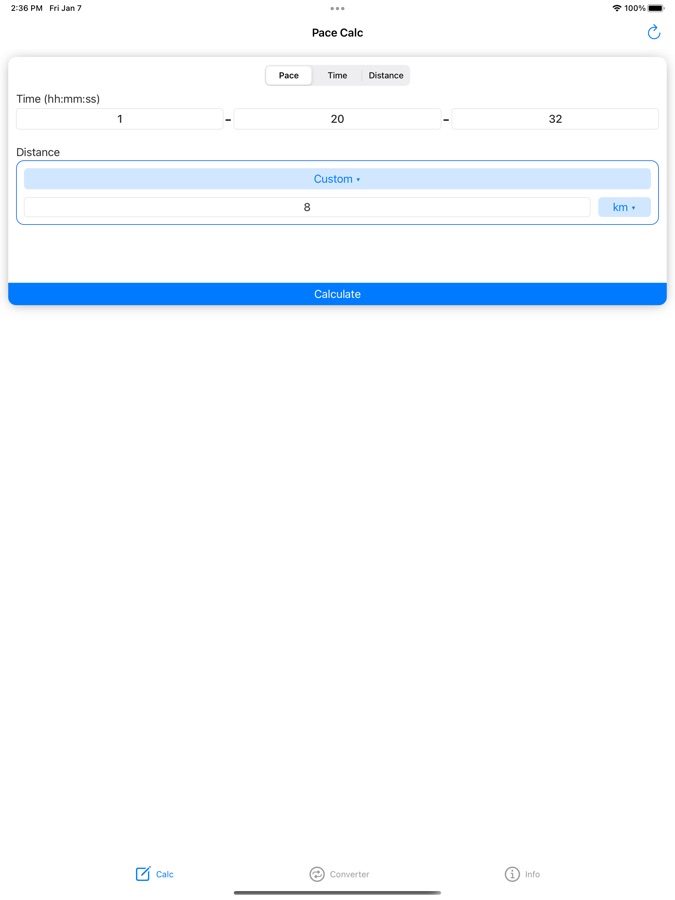 Используйте это приложение для расчета темпа, времени и расстояния для различных видов деятельности, включая бег, ходьбу и езду на велосипеде. Мы также предоставляем инструмент, который поможет вам быстро переключаться между единицами измерения темпа. Это очень интуитивно понятное приложение, простое и удобное в использовании.