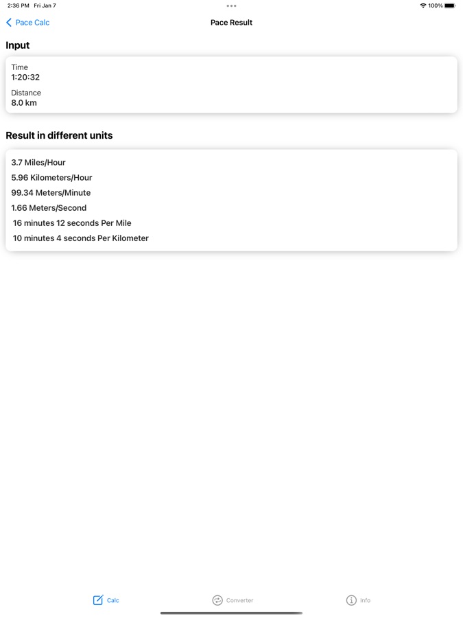 Информация о Калькулятор Темпа Бега, Расчет
