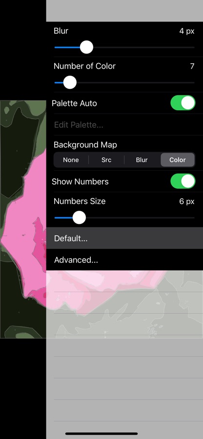 4. The top right button opens the parameters panel which allows changing the number of color, the size of the numbers, etc…