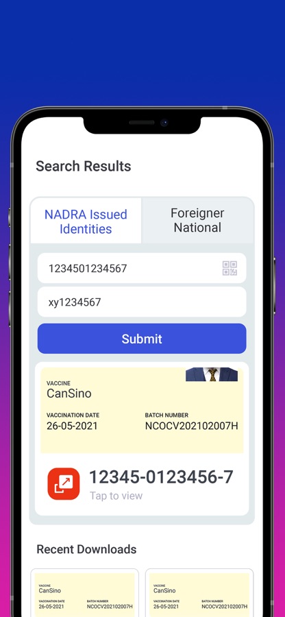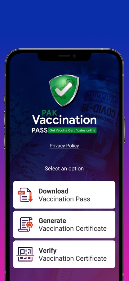 Government of Pakistan has launched the Vaccination Pass App to facilitate the people to carry their digital Covid vaccination certificate. This App allows the users to download the vaccination certificate issued through https://nims.nadra.gov.pk/nims/certificate and save it on the phone. The digital certificate is official proof of COVID-19 and other vaccinations should it be needed domestically or internationally. Using the QR Code, the digital certificate can be verified instantaneously.