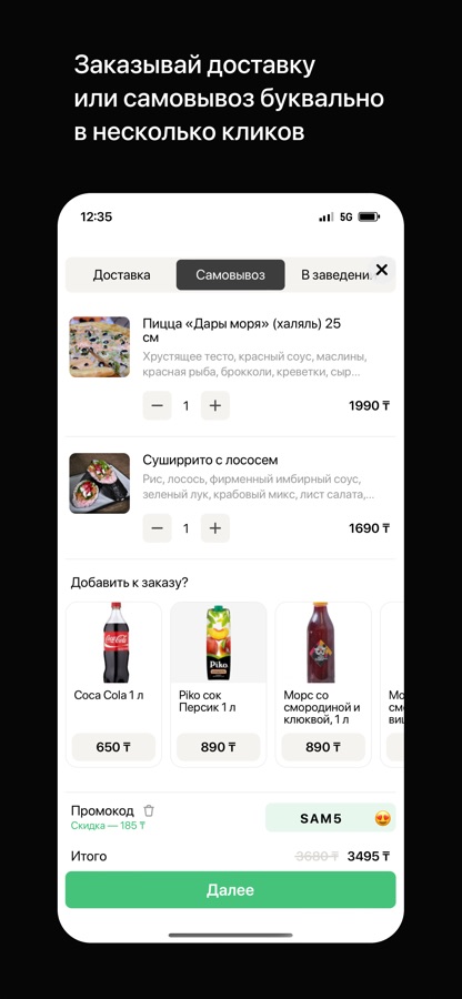 — Быстрый заказ с мгновенным подтверждением через приложение.