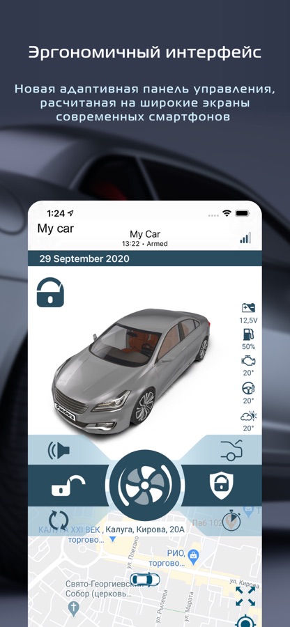 – Контроль текущего состояния Ваших автомобилей: состояние всех охраняемых зон и датчиков, текущий остаток топлива в баке (зависит от подключения), температуру двигателя, температуру в салоне автомобиля, температуру за бортом (требуется подключение датчика), текущее местоположение автомобиля.