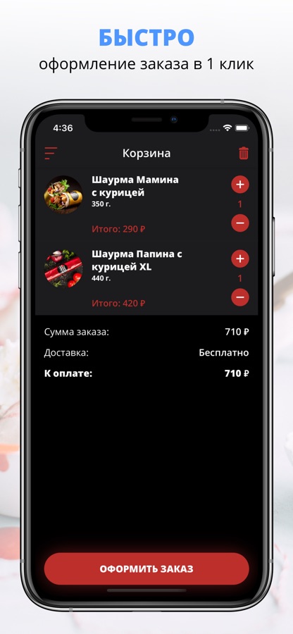 Скачивайте наше приложение, оформляйте заказ и наслаждайтесь любимой едой, где бы Вы ни были! Приятного аппетита!