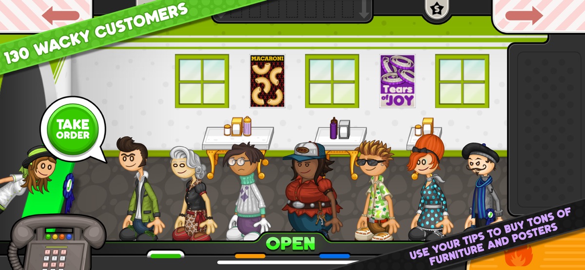 NEW FEATURES — All of your favorite features from other versions of Papa’s restaurants are now available in this «To Go» game, redesigned and reimagined for smaller screens!