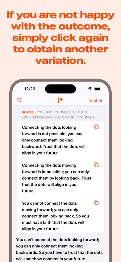 — Удобный интерфейс: Наш интуитивно понятный дизайн делает навигацию по приложению легкой. Просто введите ваш текст и наблюдайте, как он превращается в новую, уникальную версию.
