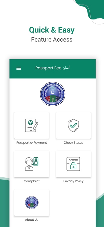 Passport Fee Asaan, is a Pakistan’s first digital payment initiative of the Directorate General of Immigration & Passports under the umbrella of Ministry Interior, for facilitation to its passport seekers to pay passport fee without standing in long queues for hours at National bank counters. Passport Fee Asaan Mobile Application will help its users in Passport Fee Calculation and Payment process for issuance of Pakistani Passports from Regional Passport Offices. Following are the salient features that have become the part of this App: