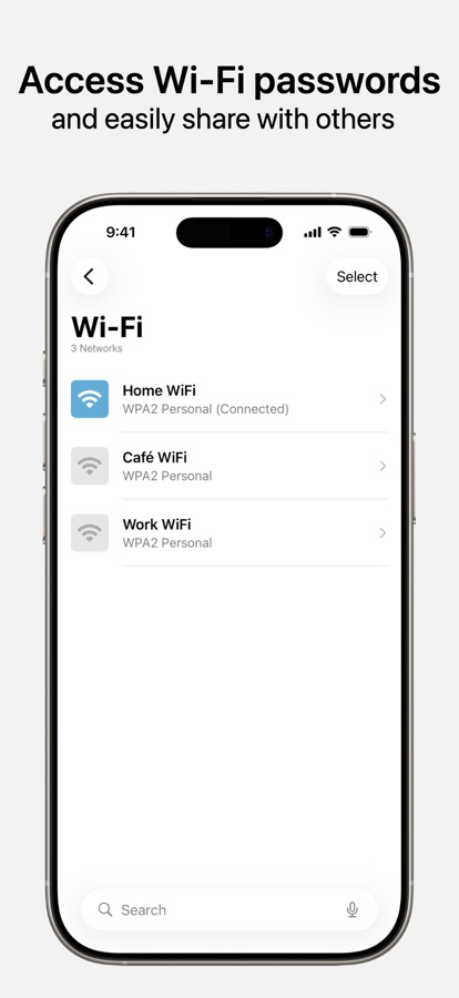 • Просматривайте сохраненные пароли для сетей Wi‑Fi и легко отправляйте их другим пользователям.