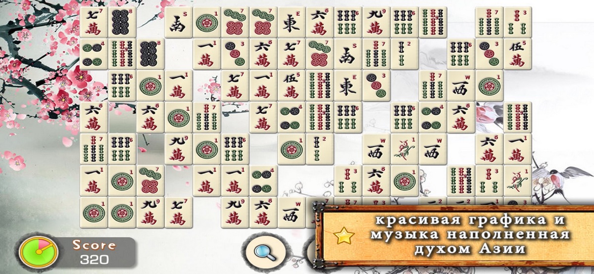 Пасьянс Маджонг, который еще называют «четыре реки» — вид пасьянса основанный на классическом китайском маджонге. Красивая графика и музыка наполненная духом Азии переносит вас в самую глубину Китая и открывает вам много часов расслабляющей игры.