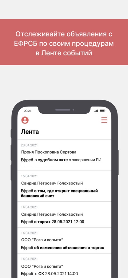 — Возможность получать пуш-уведомления о торгах, собраниях, судебных заседаниях и настраивать оповещения в удобном для себя формате.