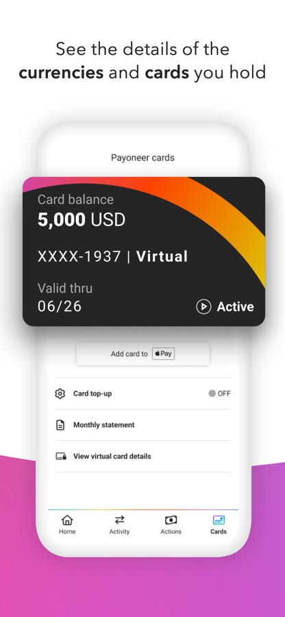 Присоединяйтесь к миллионам компаний по всему миру, которые уже используют Payoneer для упрощения международных денежных переводов и ускорения своего роста. Загрузите приложение прямо сейчас, чтобы открыть для себя возможности по-настоящему эффективной глобальной платежной платформы!