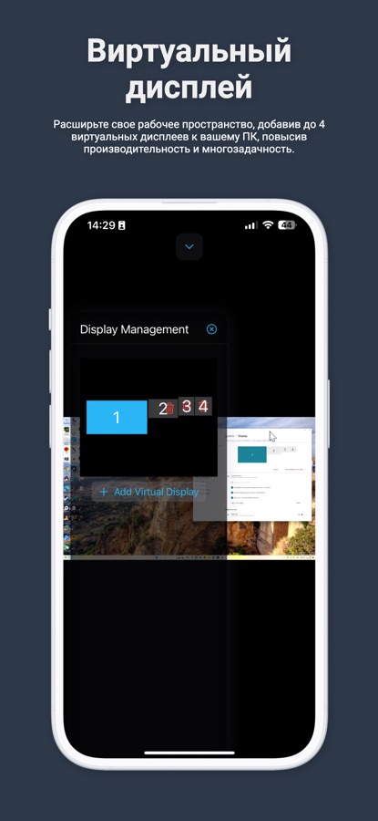 Расширьте рабочее пространство, добавив до 4 виртуальных дисплеев к вашему ПК. Повышайте продуктивность и эффективность многозадачности.
