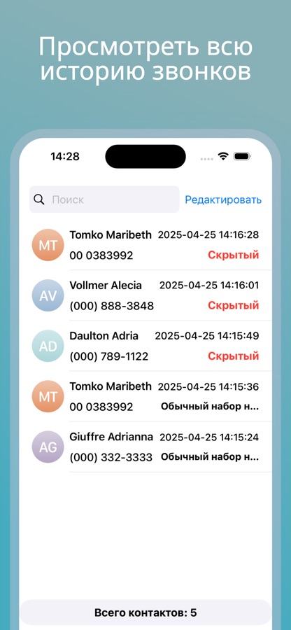 Набирайте вручную или выбирайте контакты напрямую из адресной книги. Мгновенно переключайтесь между обычными звонками и звонками с скрытым номером. Приватность всегда под рукой.