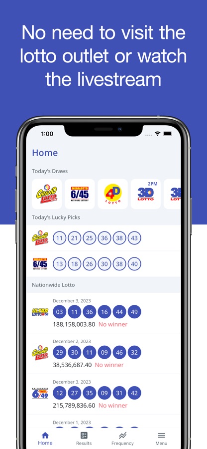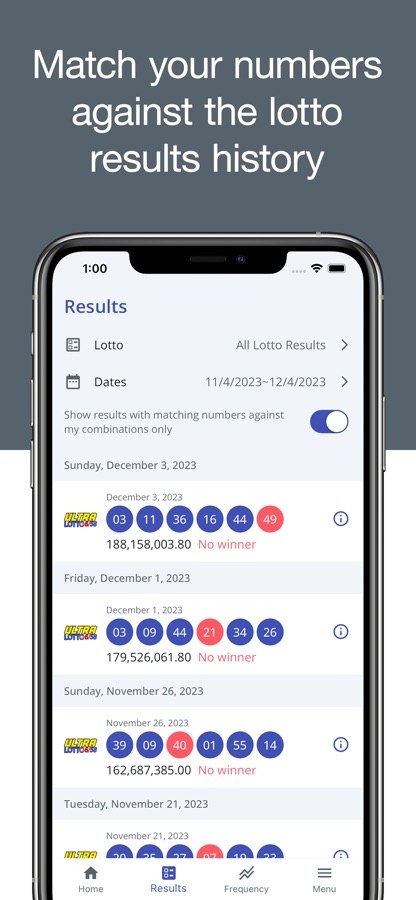 No need to waste your time going outside to visit a lotto outlet, watch TV or livestream. All you need is your iPhone or iPad. Wherever you are, you can check out the latest winning results, search for the previous lotto draws, discover which number is hot, generate your own combinations, and manage your lucky numbers. You’ll even receive notifications when results are available so you don’t need to check your phone or tablet from time to time!