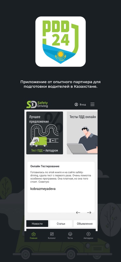 PDD24 – официальное приложение Safety Driving, компании разработчика экзаменационных вопросов по ПДД РК!