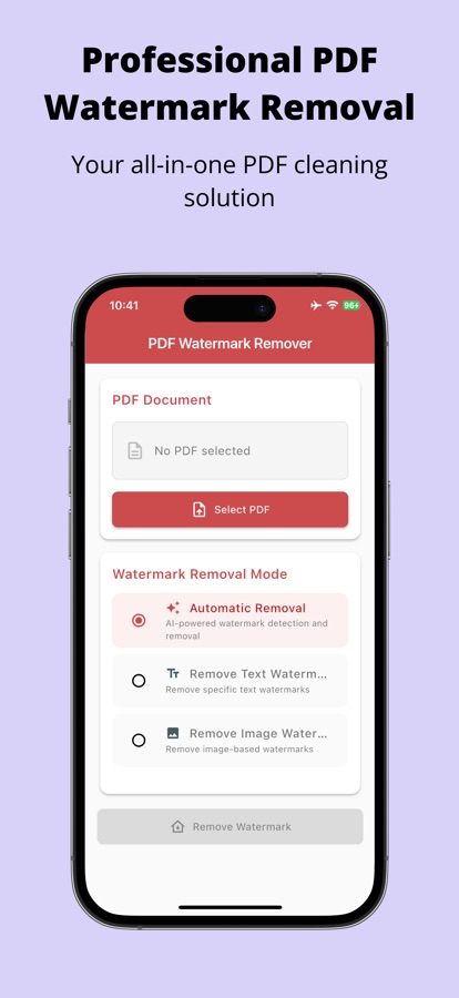 PDF Cleaner — профессиональное решение для удаления водяных знаков, паролей и метаданных в PDF-документах. Будь то удаление раздражающих водяных знаков, разблокировка защищенных паролем файлов или очистка или редактирование скрытой информации в документах, мы предоставляем вам эффективный, точный и безопасный опыт.