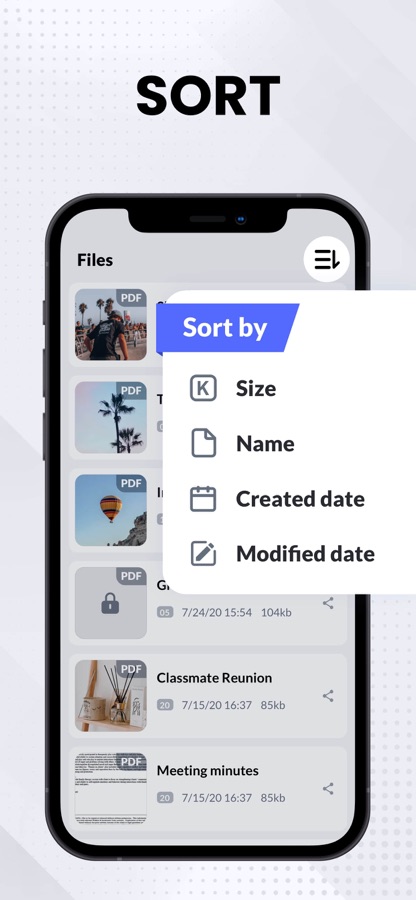 Изображения и PDF-файлы автоматически сортируются по названию, размеру, дате создания, дате изменения и т. д. И, конечно, это можно изменить вручную.