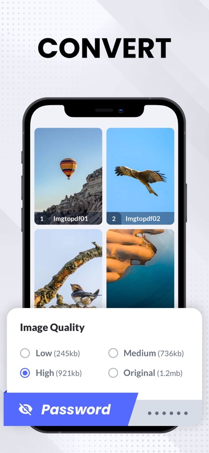 Этому приложению требуется разрешение на доступ к камере и фотобиблиотеке для конвертации в PDF.