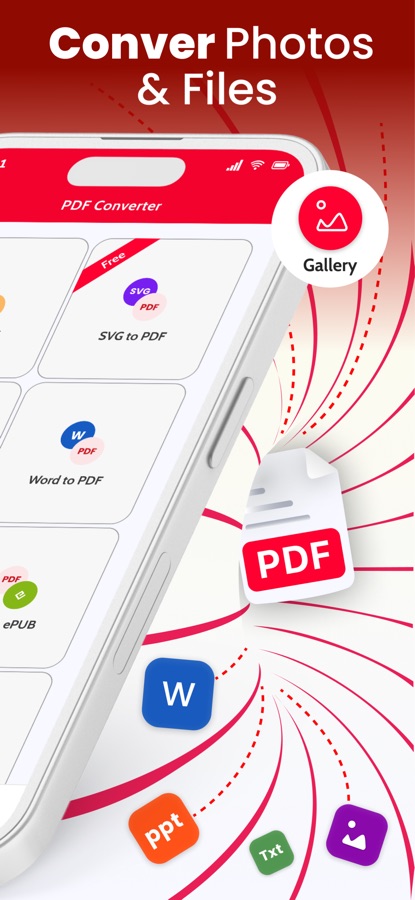 All files to PDF Converter is a document converter that allows you to transform files to other extensions or formats. You can easily convert DOC, DOCX, PPT, WORD, JPG, PNG, XLS to PDF formats.