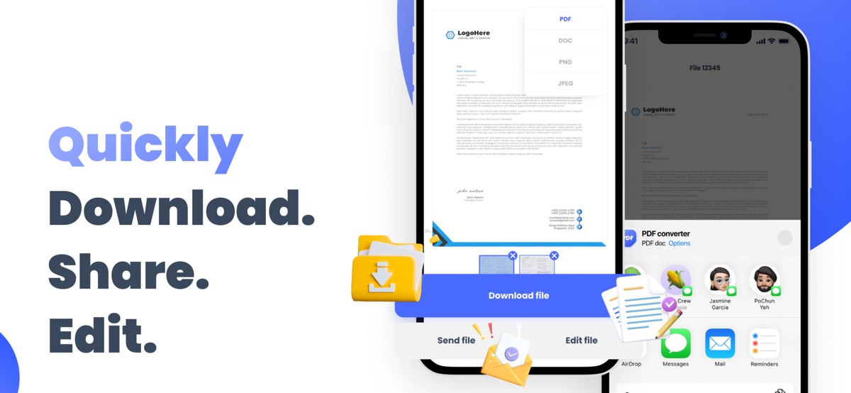 Конвертируйте файлы из WORD (DOC), JPG, PNG, XLS, TXT, PPT, WEBP, EPUB, FB2, HTML и других популярных форматов в PDF и наоборот на вашем iPhone. Делитесь конвертированными файлами, распечатывайте или сохраняйте их в облачном сервисе.