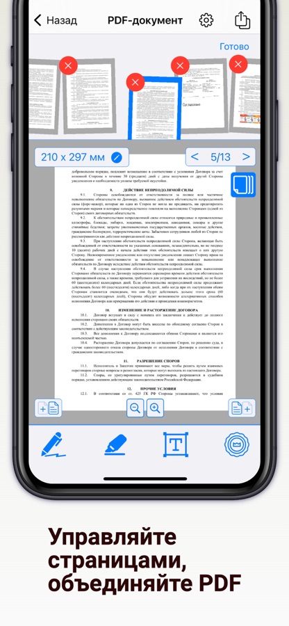 + Открывайте и редактируйте многостраничные PDF-файлы, добавляя подписи, штампы или изображения