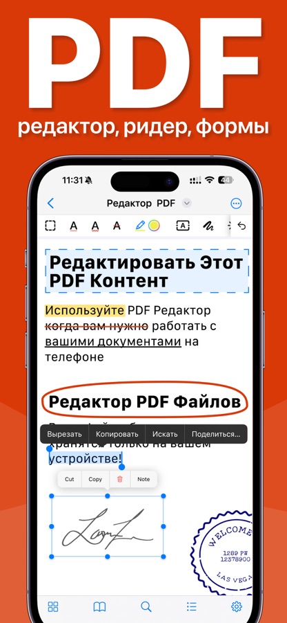 Используйте приложение PDF Editor, если хотите редактировать или подписывать документы на ходу со своего iPhone или iPad. Импортируйте файлы PDF в приложение, затем читайте, комментируйте, редактируйте и делитесь ими. Сканируйте свои документы и конвертируйте их в файлы PDF всего несколькими нажатиями.