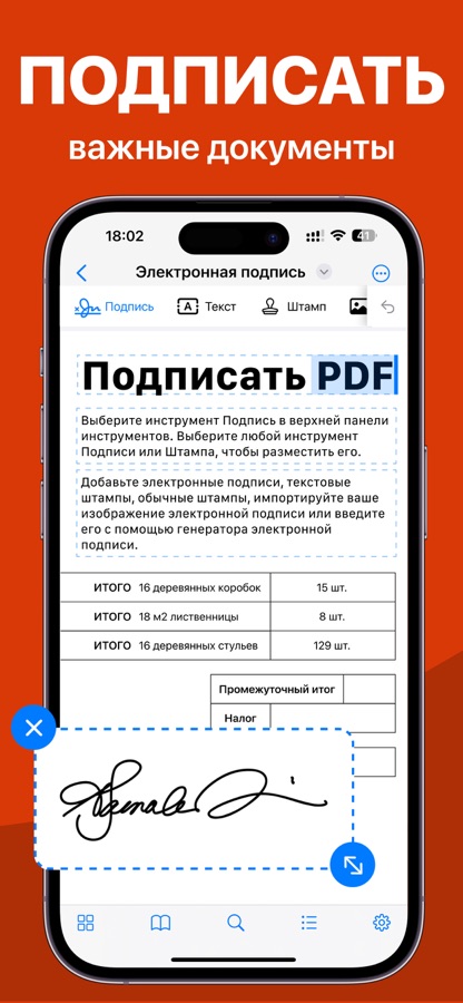 — Используйте свой палец или Apple Pencil для электронной подписи любого PDF-документа.