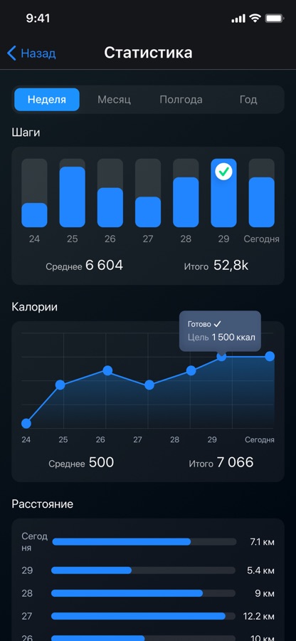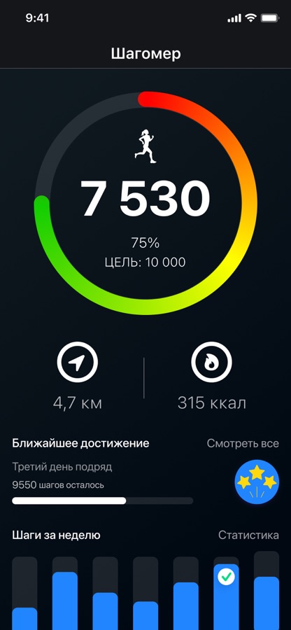 Наш счетчик шагов обладает всеми необходимыми функциями: