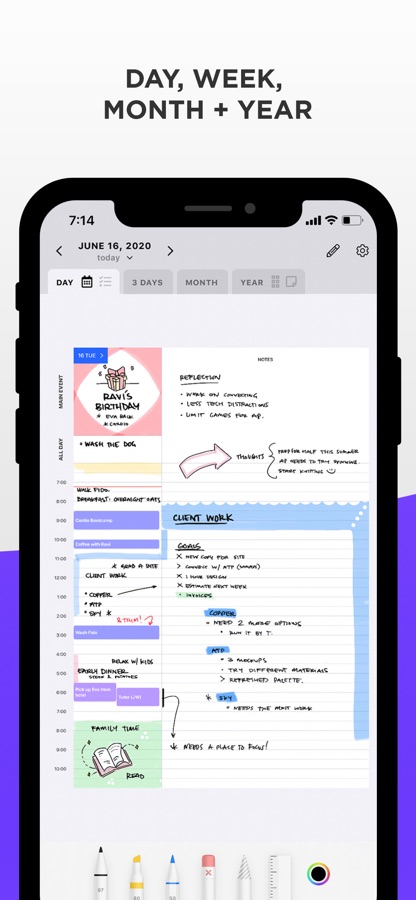 Combine your daily digital calendar with your paper planner! Now you no longer have to choose between typing and handwriting your schedule, events and reminders. Pencil Planner Pro is the best of both worlds as you can write directly over the events that come from the Calendar app using your Apple Pencil. Take your paper agenda into the digital world!