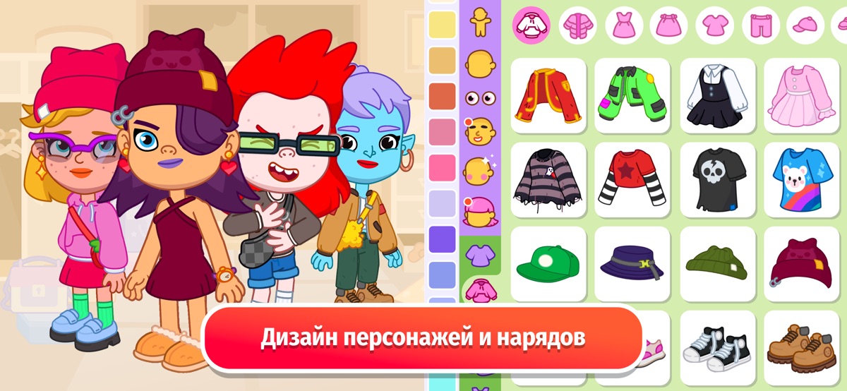 Ваш мир — ваши правила! В редакторе аватаров можно создать семью, соседей, друзей или даже персонажей-малышей. Нарядов и стилей — неисчислимое множество, и каждый аватар готов к новым приключениям. Соберите команду врачей, родителей и друзей — пусть они наполнят Pepi City характером, юмором и яркими историями.