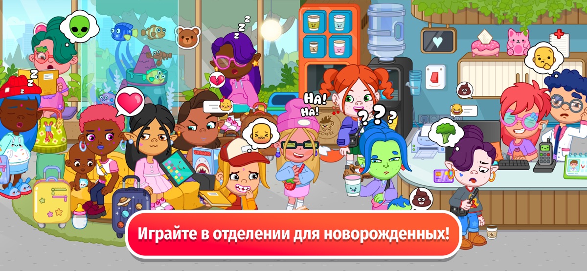 Это одно из самых уютных мест города Pepi City. В Детской больнице кипит жизнь: новорождённые, заботливые родители и множество трогательных моментов. Кормите малышей, взвешивайте их, утешайте и создавайте свои тёплые истории. Наряжайте малышей в одеяльца, используйте настоящие медицинские инструменты и почувствуйте себя настоящим добрым врачом в мире Pepi. Здесь дети учатся заботе, эмпатии и радости — и каждый малыш-аватар становится частью большого приключения в Pepi City.