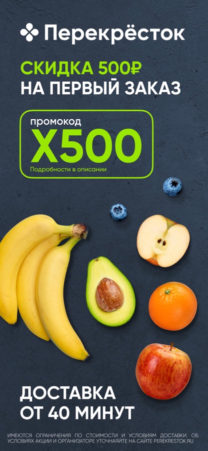 — Быстрая доставка еды и свежих продуктов из ближайшего магазина «Перекрёсток».