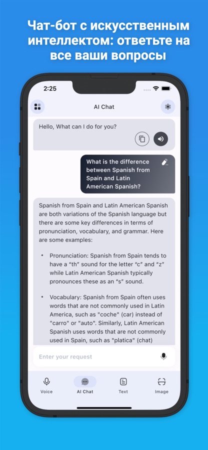 Чрезвычайно точно переводите голос, фото, текст с 50 языков на ваш язык и наоборот, упрощайте изучение любого языка с помощью ИИ-помощника.