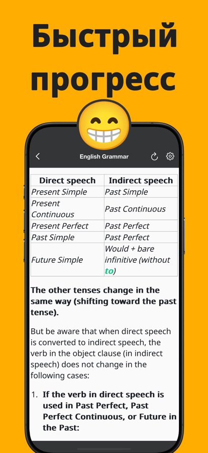 В грамматическом разделе вы найдёте чёткие объяснения по всем важным темам. Вся английская грамматика представлена в структурированной форме, включая исключения, которые часто встречаются в тестах вроде IELTS и TOEFL. После каждого блока вас ждут упражнения, чтобы закрепить материал — их более 15 видов.